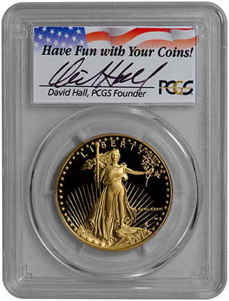 1986-W $50 Gold Eagle (PCGS-PR70DCAM) Authentic David Hall Autographed Insert [Pop 3 Coin!]